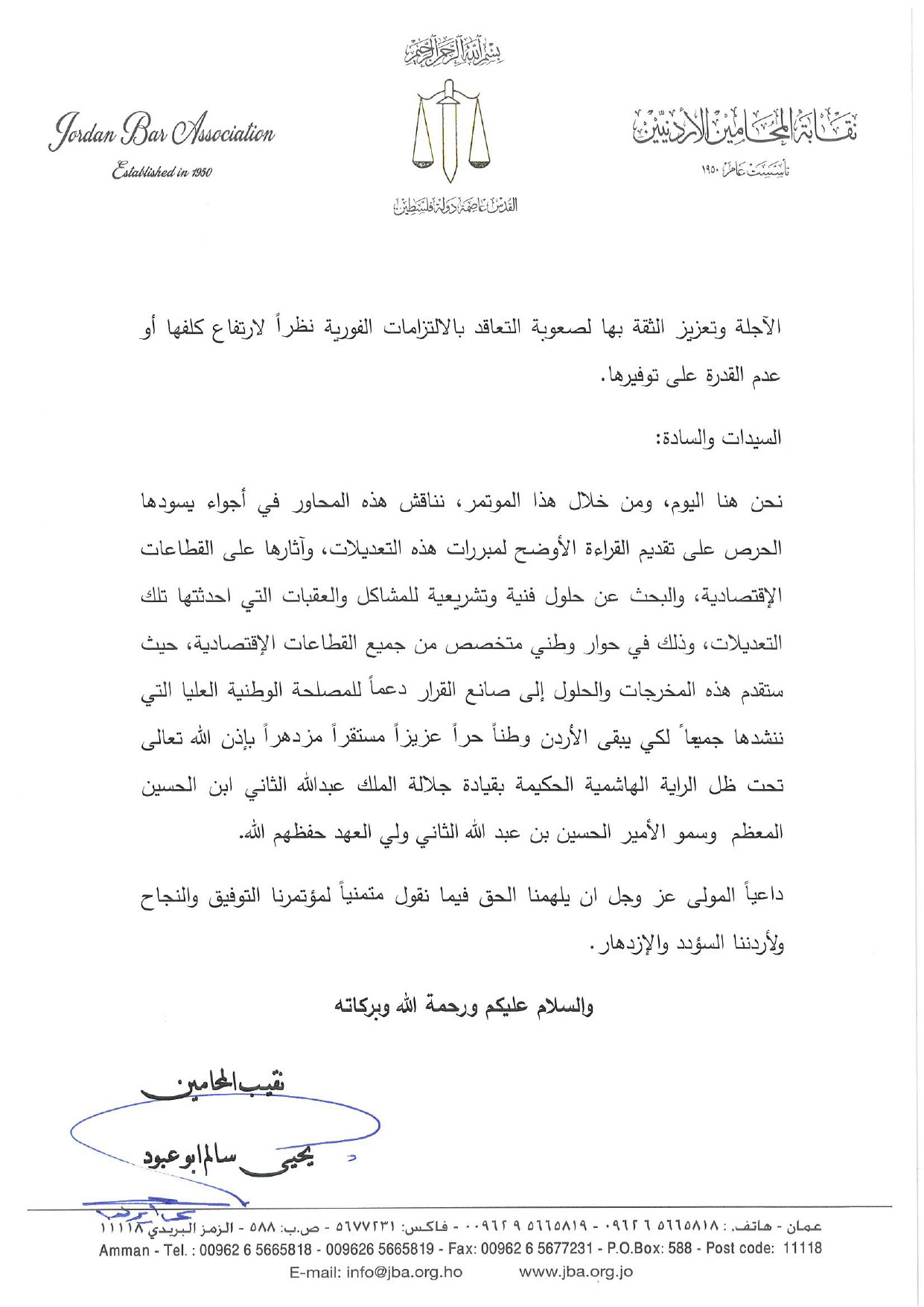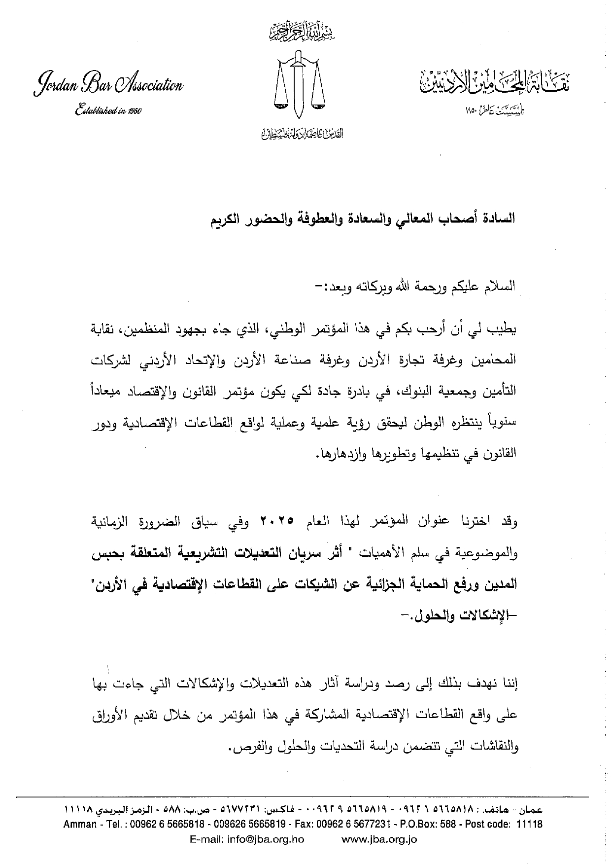 كلمة نقيب المحامين في مؤتمر القانون والاقتصاد ٢٠٢٥ اثر التعديلات المتعلقة بحبس المدين ورفع الحماية الجزائية عن الشيكات على القطاعات الاقتصادية